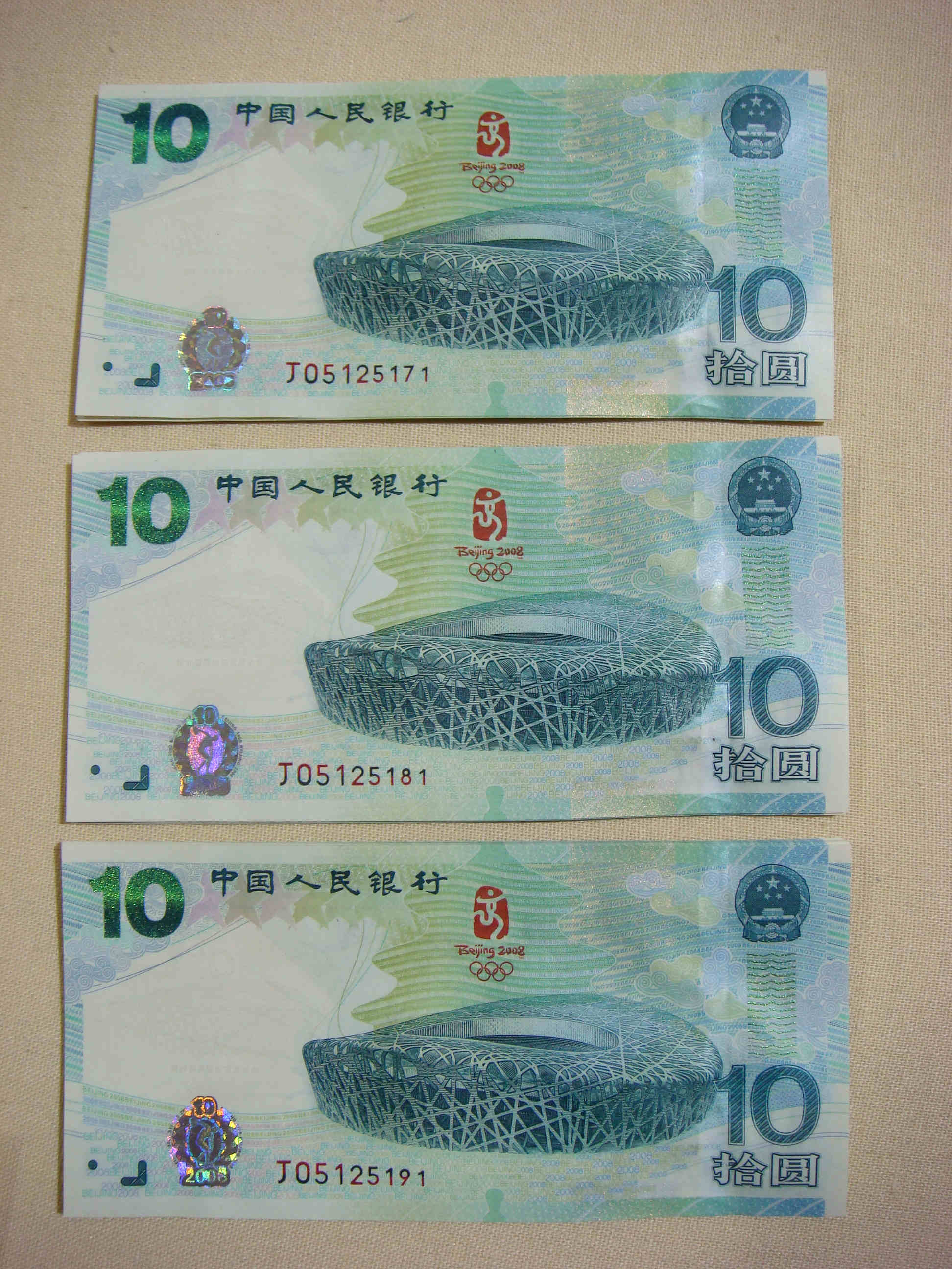 → 出 奥运钞,标十,建国钞 标十 散