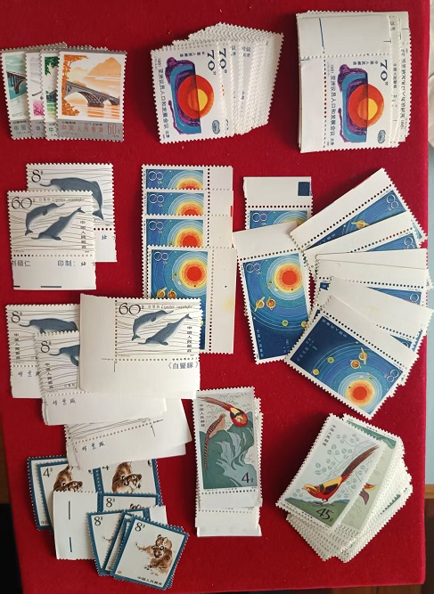 桥,原胶近全品,24元。亚洲议会,原胶上品,4.5元,18套。白鱀豚,原胶全品,带边24。边角26。九星汇聚3.5 ,共13套。东北虎,原胶全品,24,共,3套。金鸡,原胶近全品 ,25 共10套。