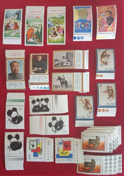 牧业部分厂铭,原胶近全品,45元。儿童年色标,原胶全品120。朱德色铭,原胶近全品,38。东北虎色标,原胶全品,38。熊猫色标,原胶全品,32。中日厂铭,原胶全品,28。五一色标,原胶近全品,全标15,4套,标头尾12,6套。