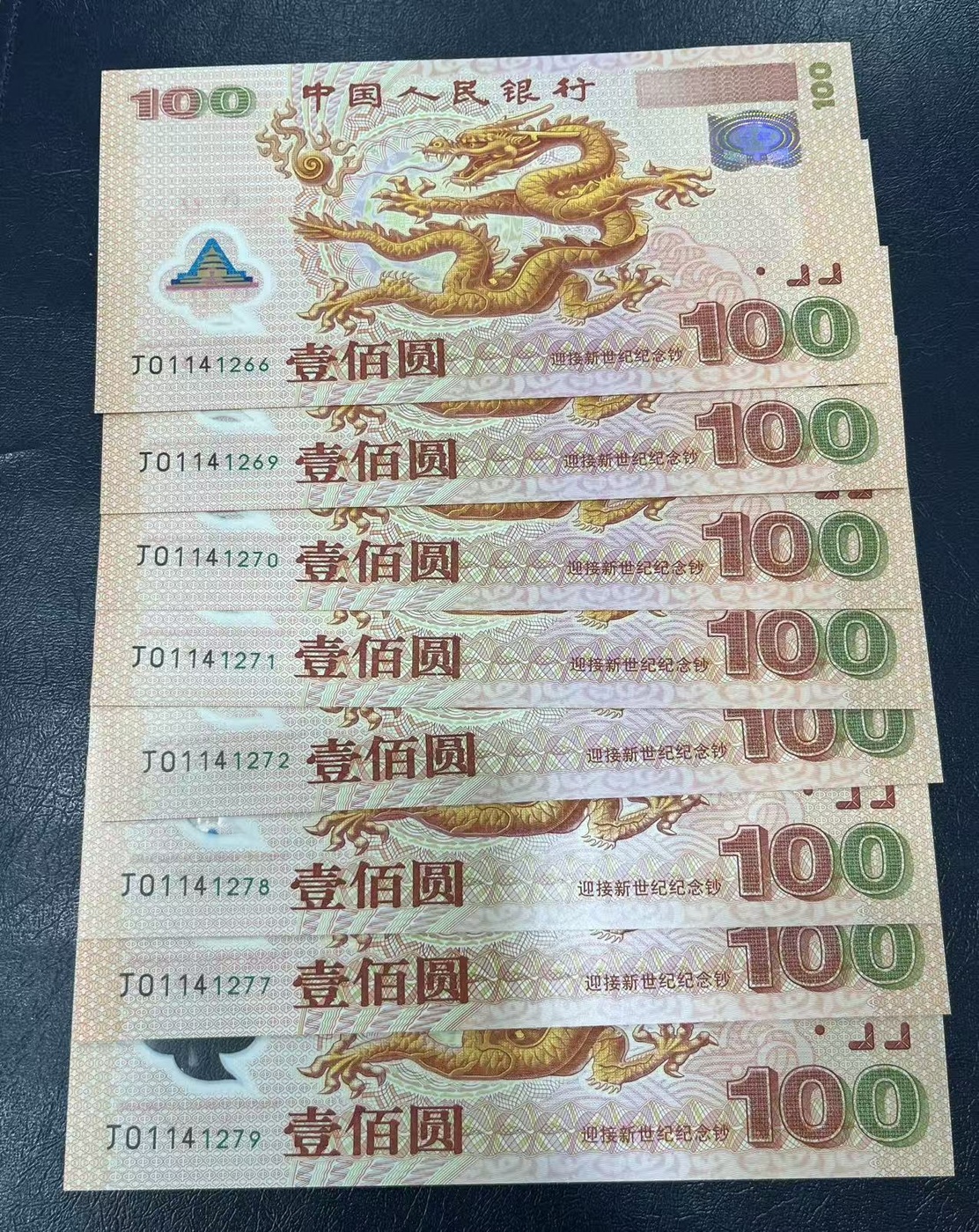 出8张千禧龙钞 含尾8