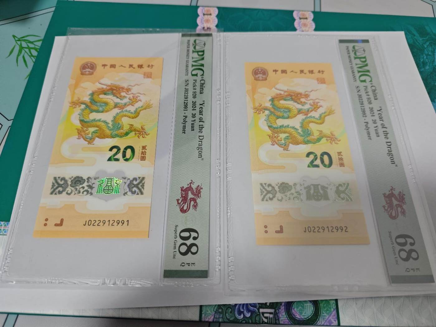 出2张小龙钞68分龙四0129组合满号,1350x2=2700元包邮