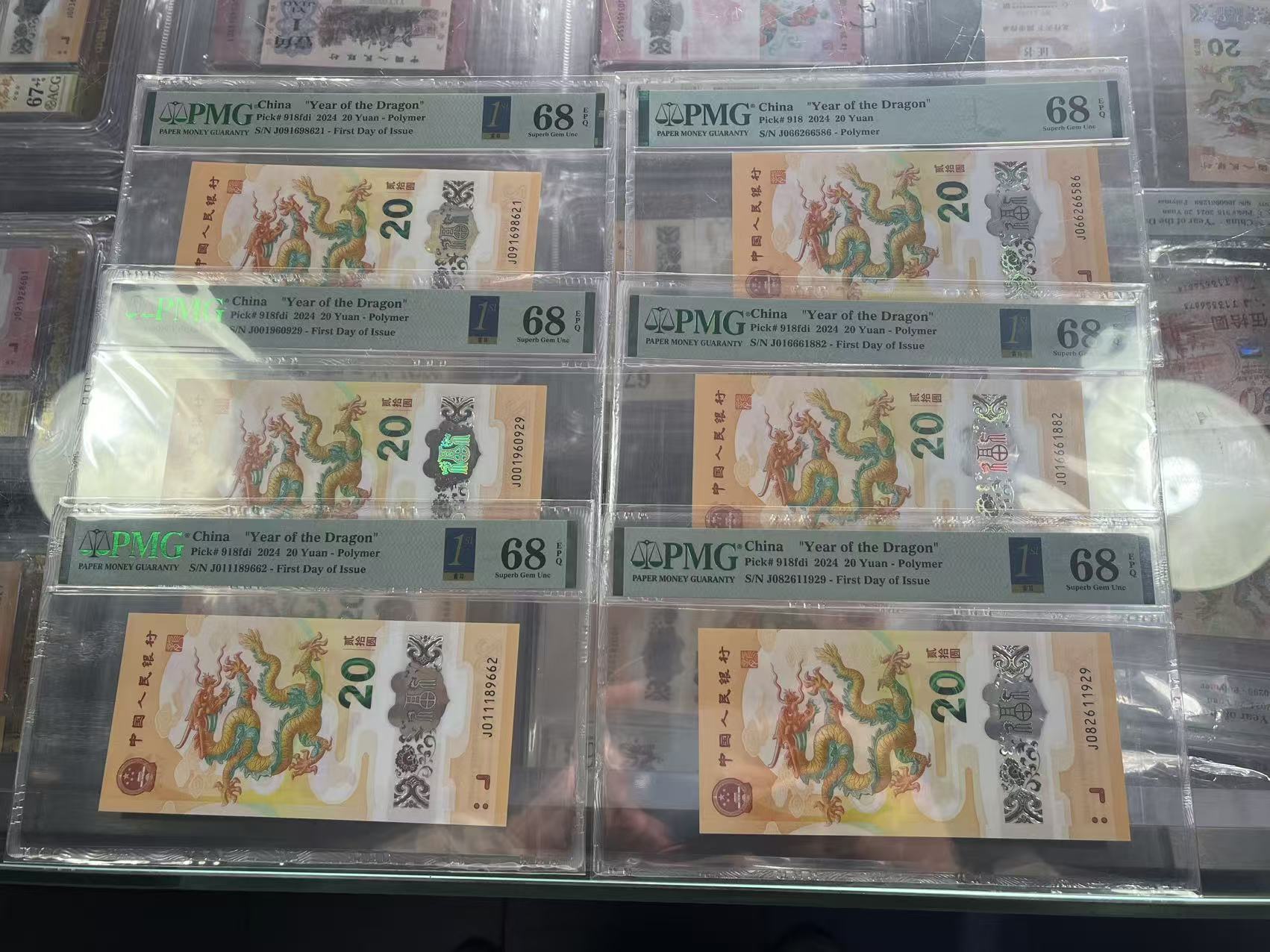 → 售小龙钞PMG68金兰标朦胧号、小龙钞新标十钻石标、PMG68如意号10张