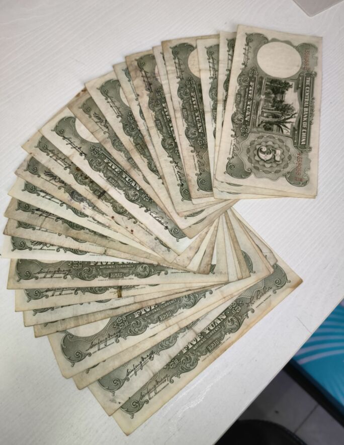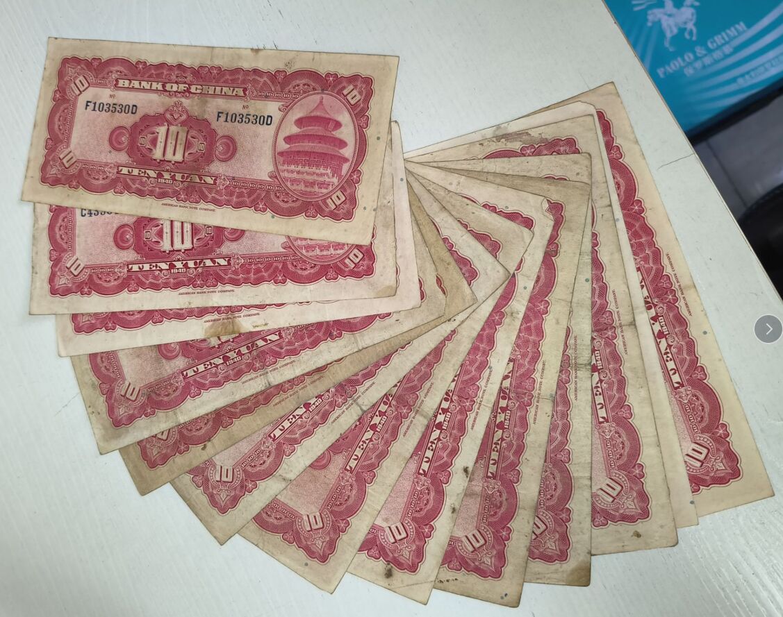 原票板子非常硬 品相好 红拾元13张 绿伍元6张另一个伍元25张