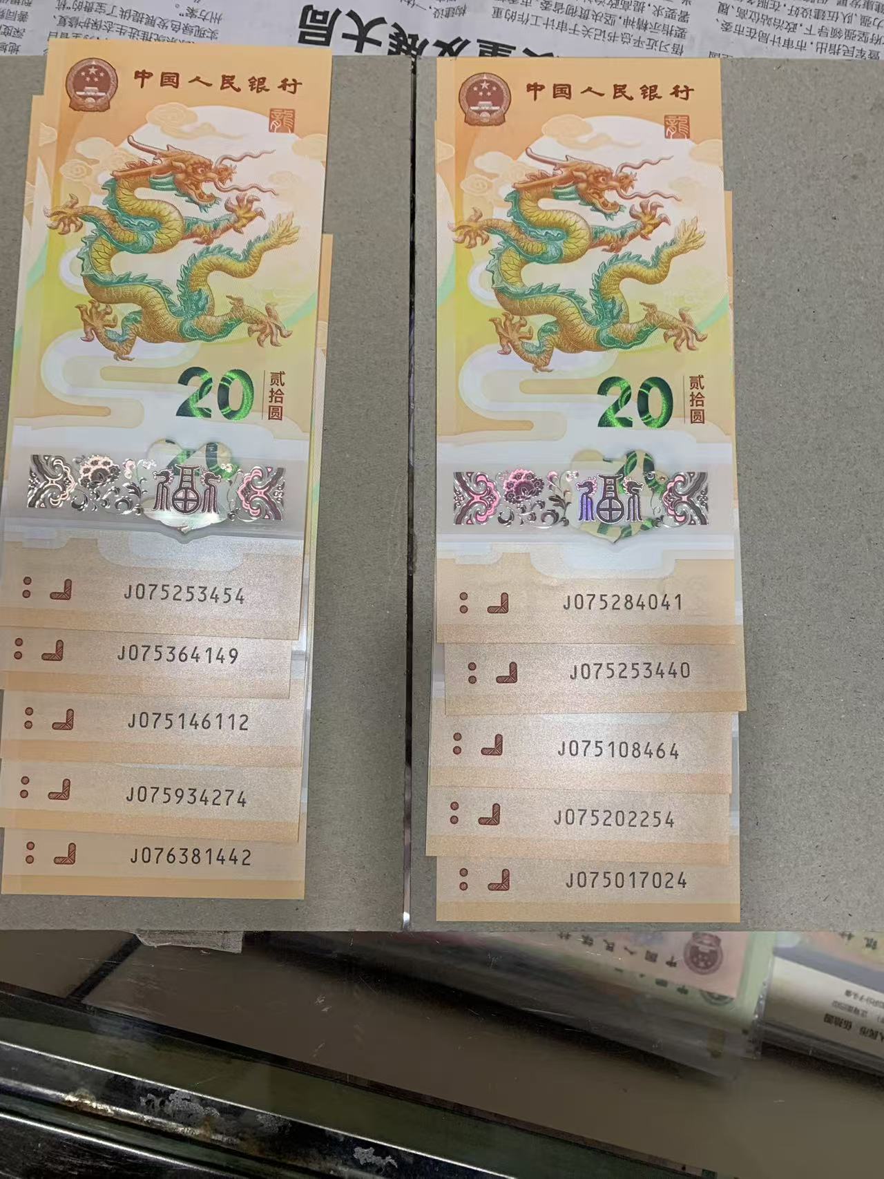 售;龙钞散张10张 .80元/一张不常在线.确认后微信看细图