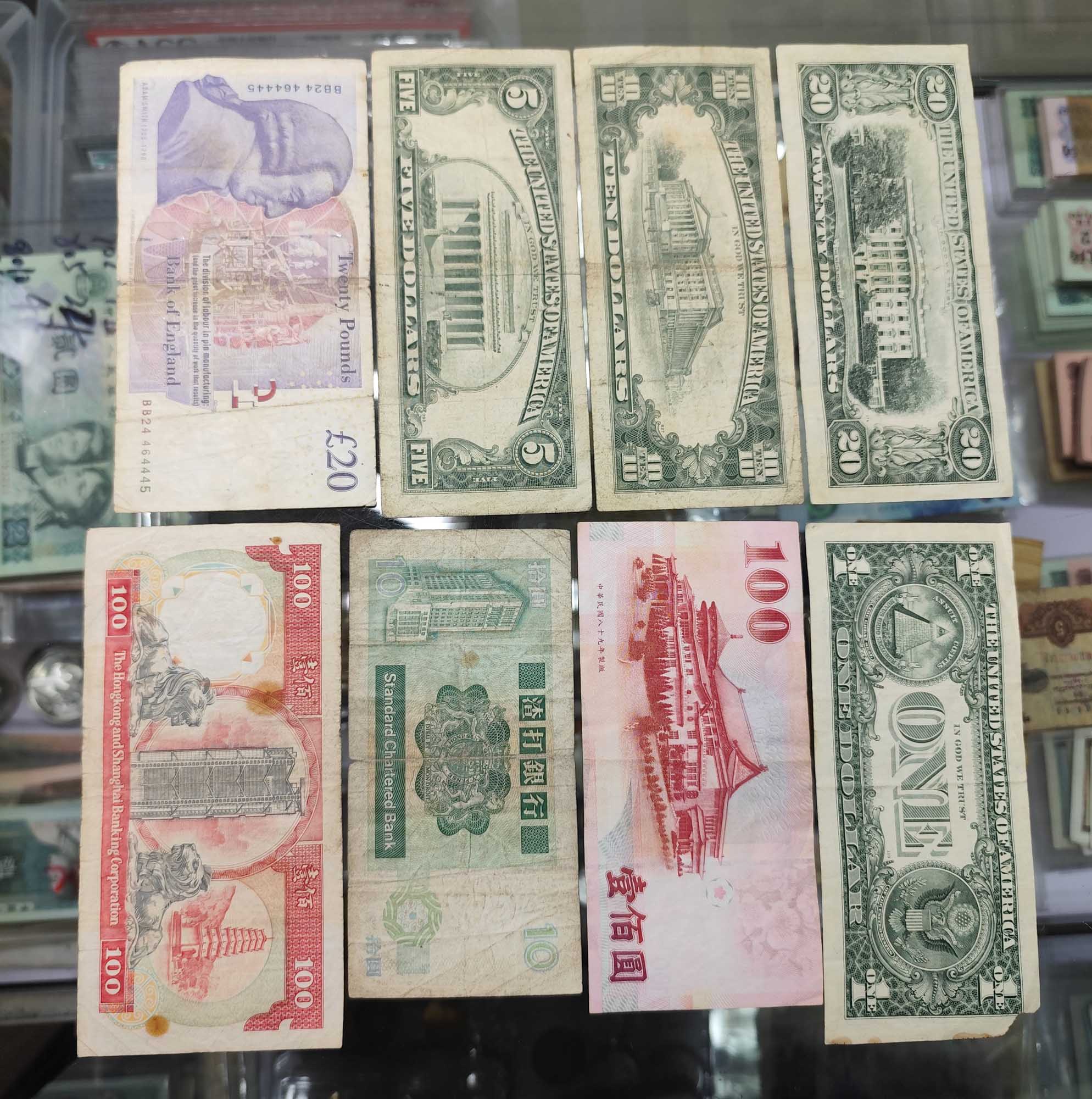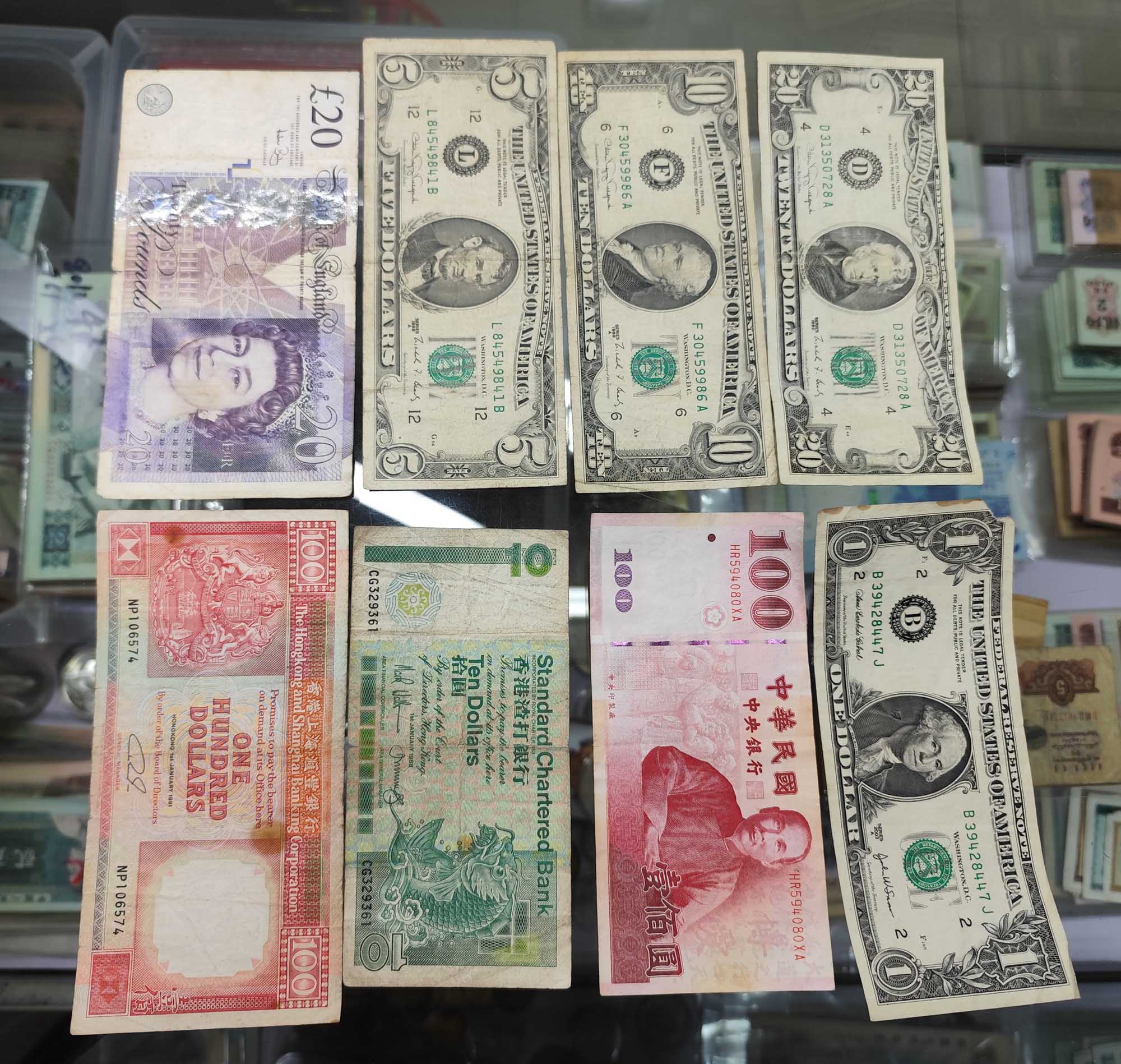 英镑185元,美元252元,台币23元,老港币110元!一起走共计570元包邮!