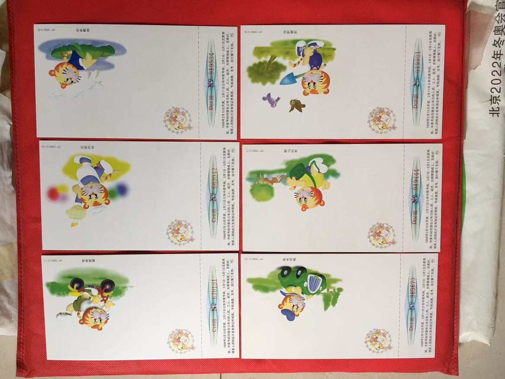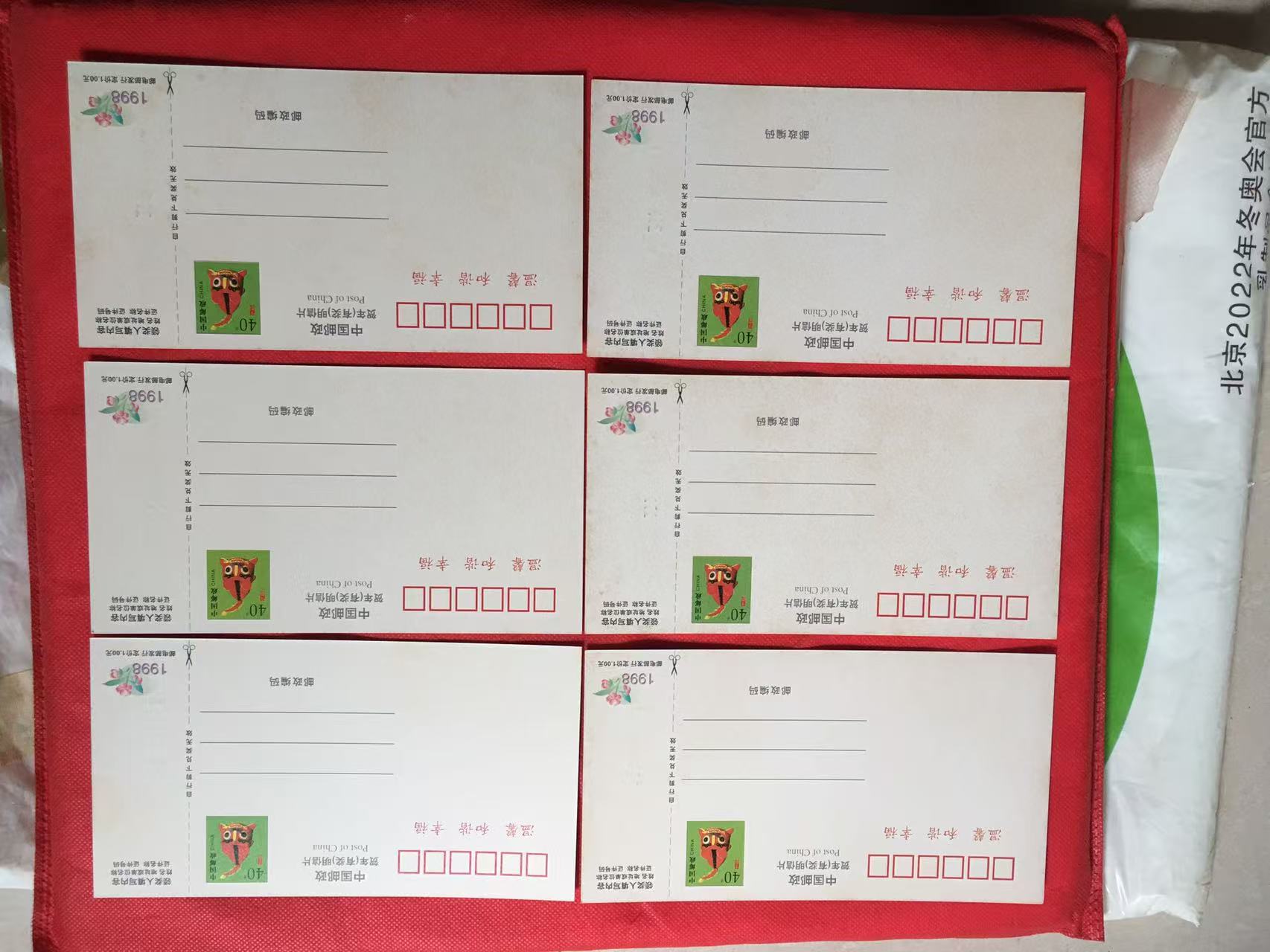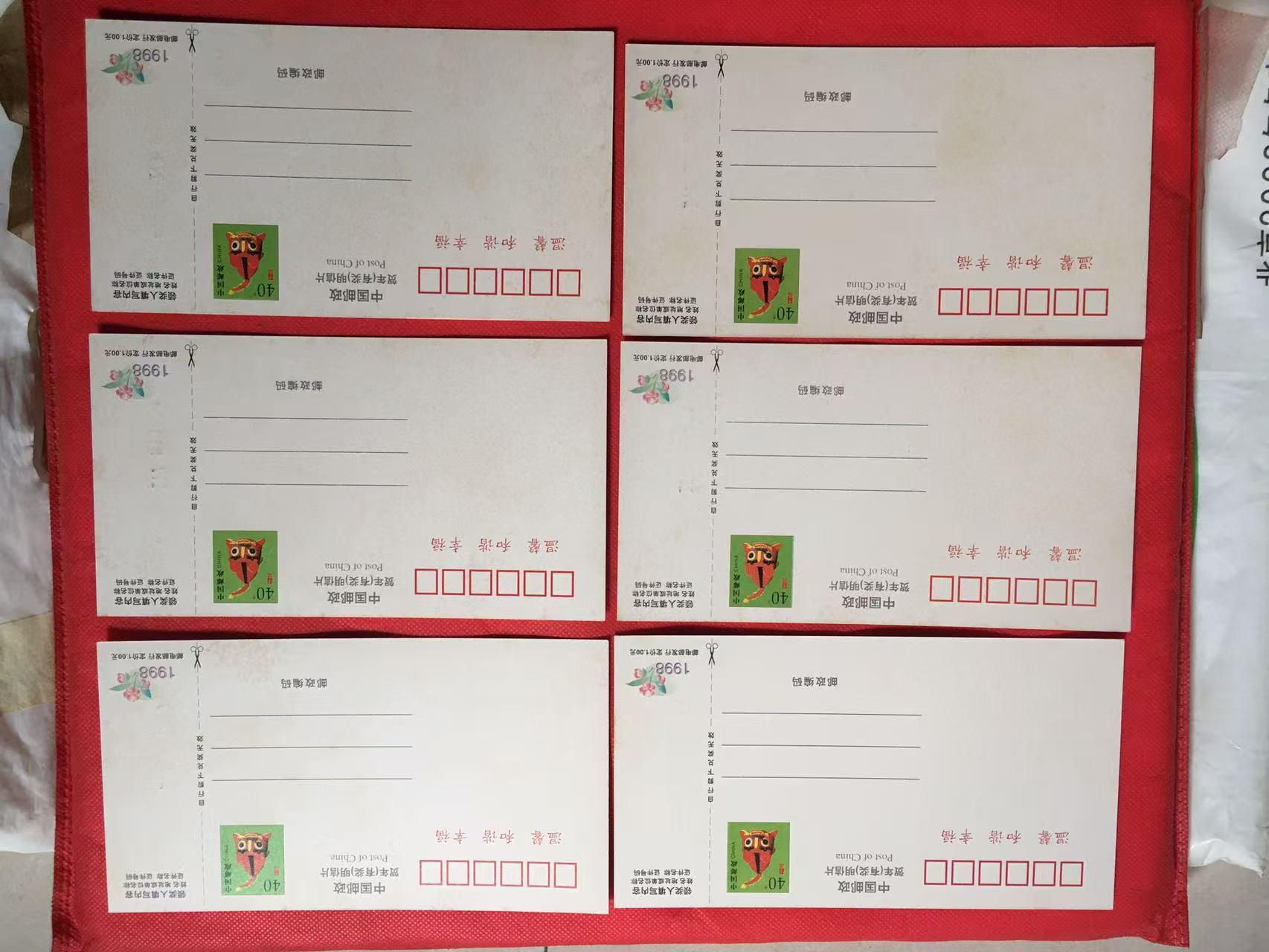 售,1998年贺年有奖明信,1套12枚面靓,四角尖尖,背有黄。有30套左右,1套12枚。
