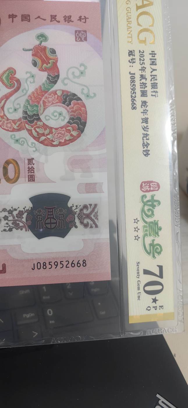 → 蛇钞如意尾8爱藏评级70分大黑星一枚