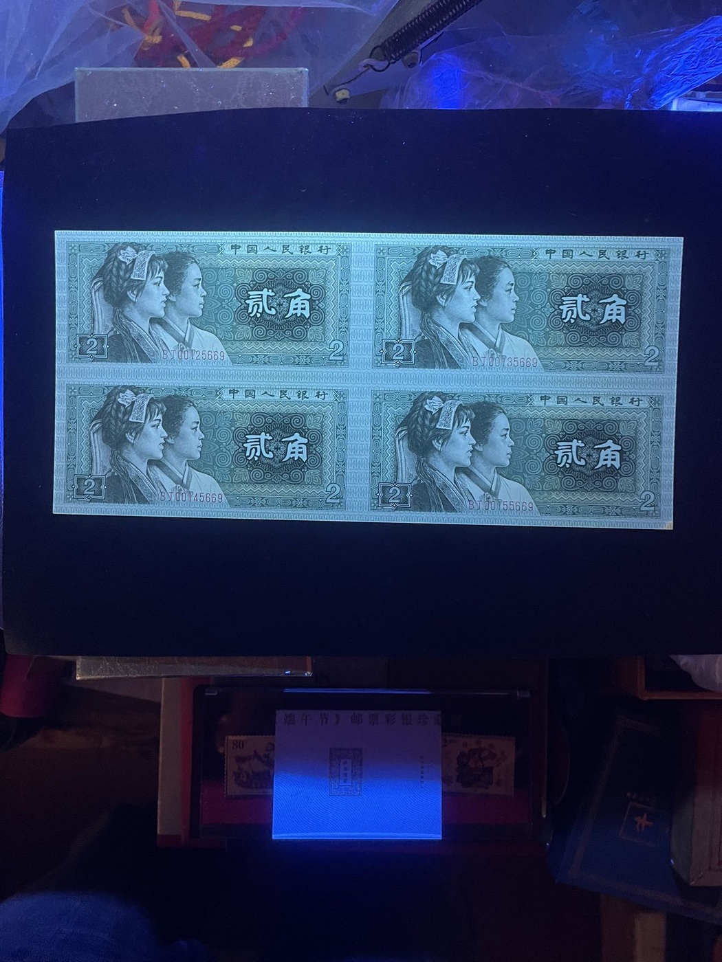 长城大四滚动3和4,灯下无斑,只有贰角背面左下角灯下有一点点微油,售8500元