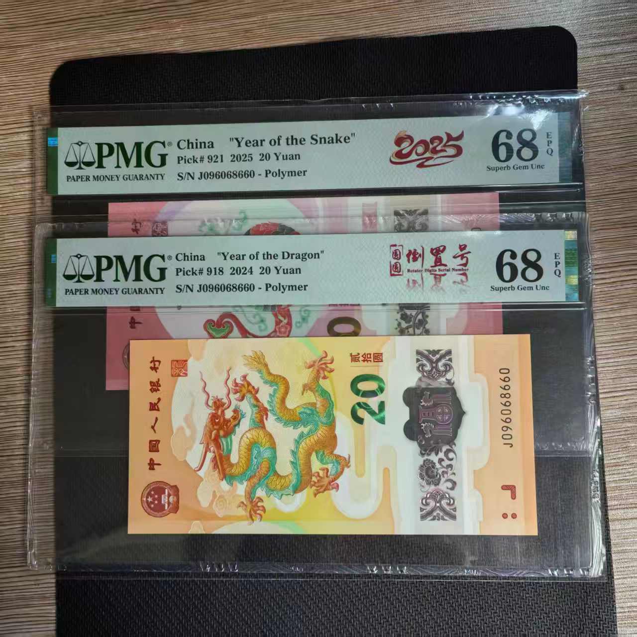 → 出售PMG 68分小龙钞,蛇钞圆圆号全同号一对
