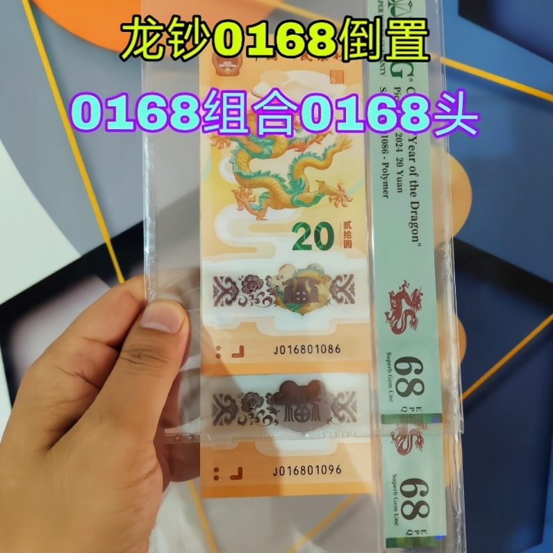 → 龙钞0168组合0168头尾6PMG68分0168头五福倒置