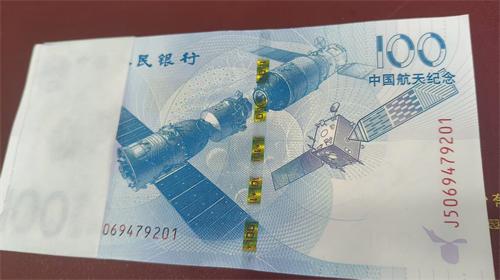 → 出航天钞100张连号含爆子号222,; 流浪地球荧光,其中三张断连已补,百张通走10138元包邮