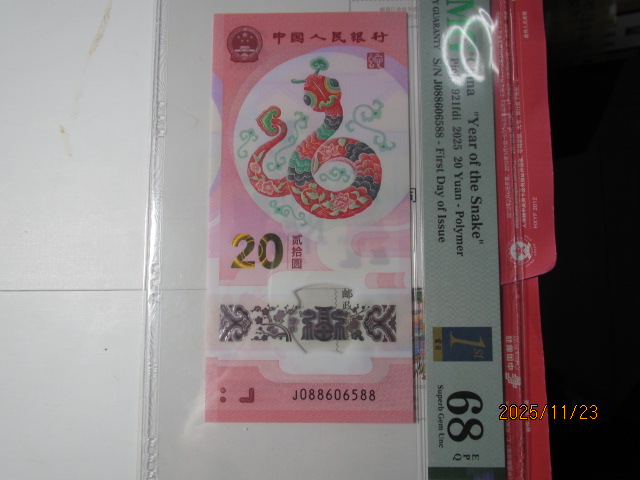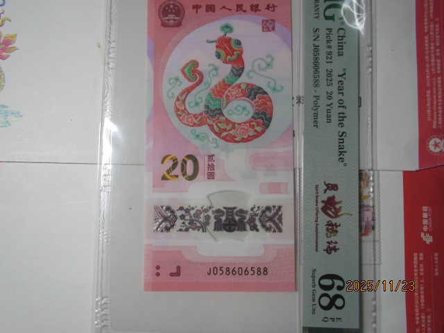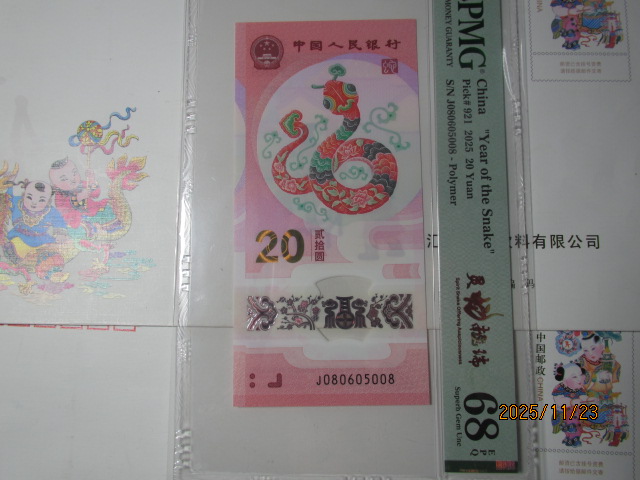 5800元出4张PMG68分蛇钞0568尾8尾88.有5龙珠循环号,尾8同,金兰首日标。上涨品种,不议价。电话联系确认。