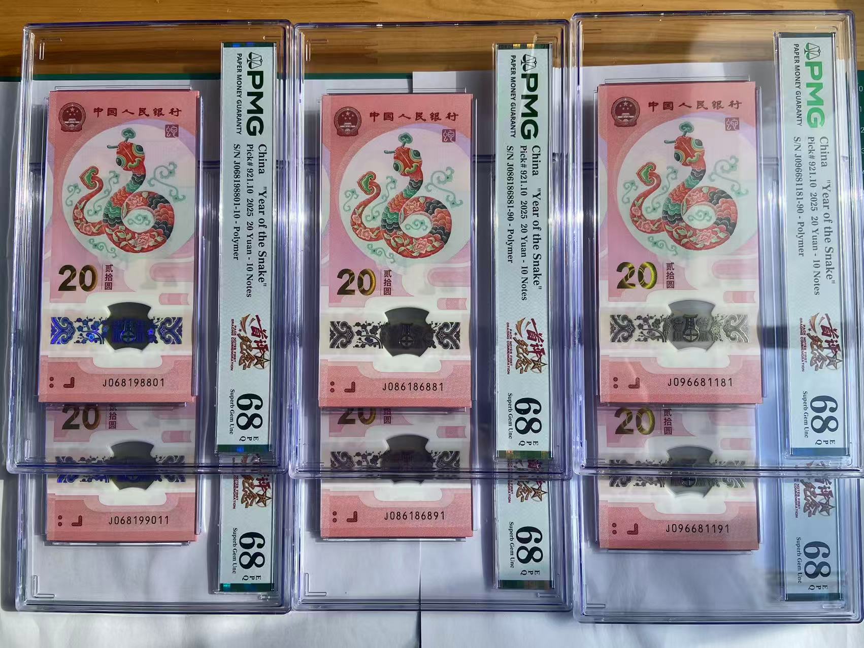 左边2组06819五福临门头标10,中间2组086头0168尾888满号独1标20,右边2组满号尾88标20,6组标10共计20000元,PMG首评纪念,本人一手货,6月份原票送评,原汁原味,适合收藏,货好价好,不要拿普通号码的爱藏评级来比较!