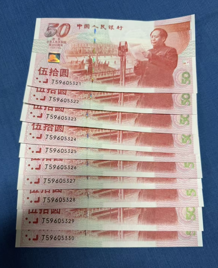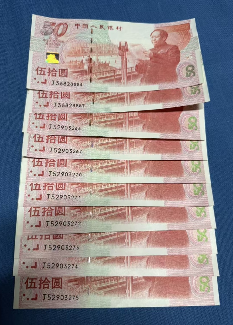 替友出建国钞红灯笼标十+10张散连,品如图,全新直板,灯下无斑,标十是无47红灯笼,散连10张除尾8884和8887外,全部为红灯笼。标十售价2000元一组,散连175元/张,10张小计1750元,因尾266票面有折(对光无黑线),尾272角部有小折,合计减20,等于散连10张1730元。以上20张总计3730元包邮。