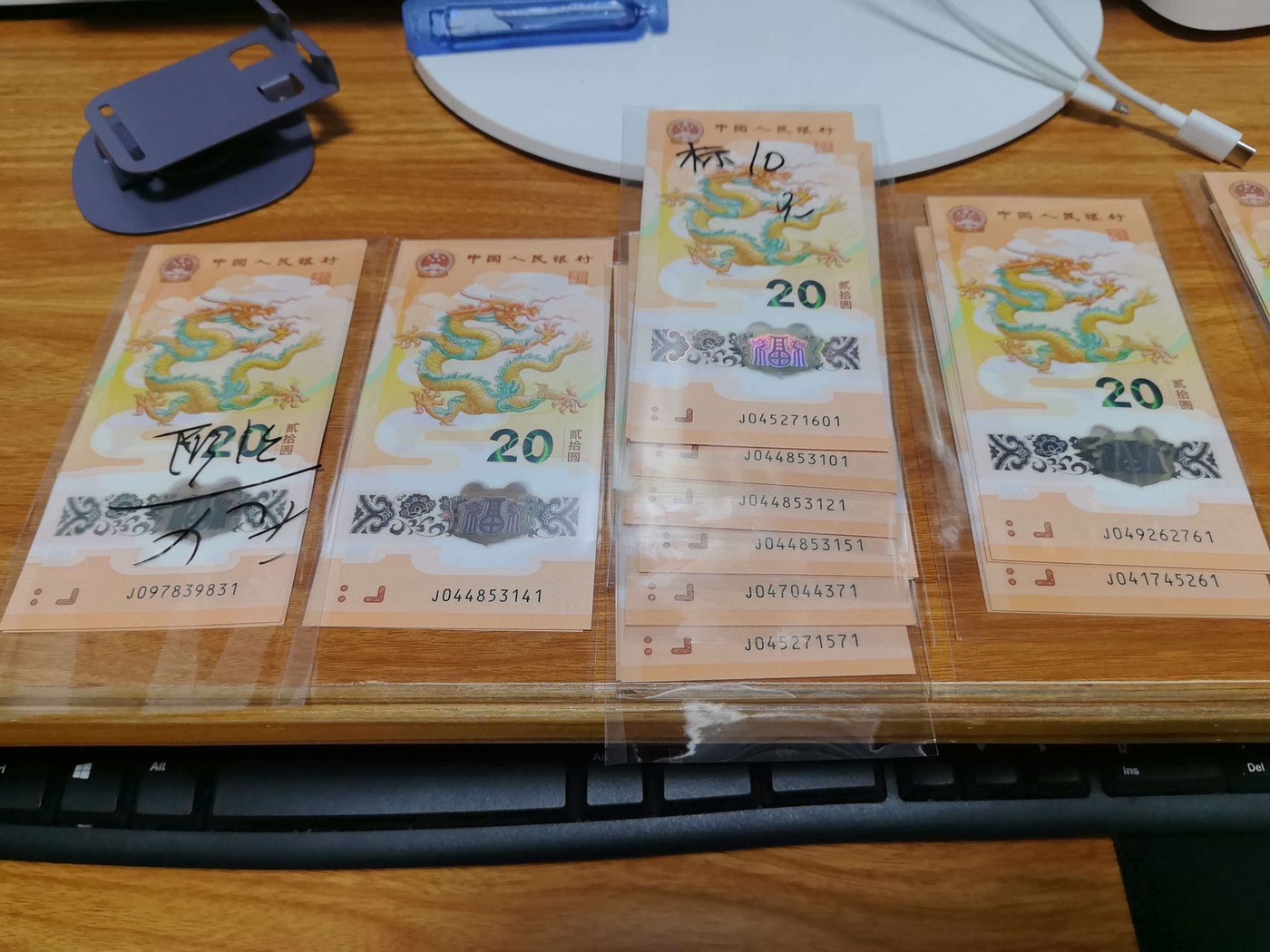 → 帮朋友确认10组带4龙钞标十