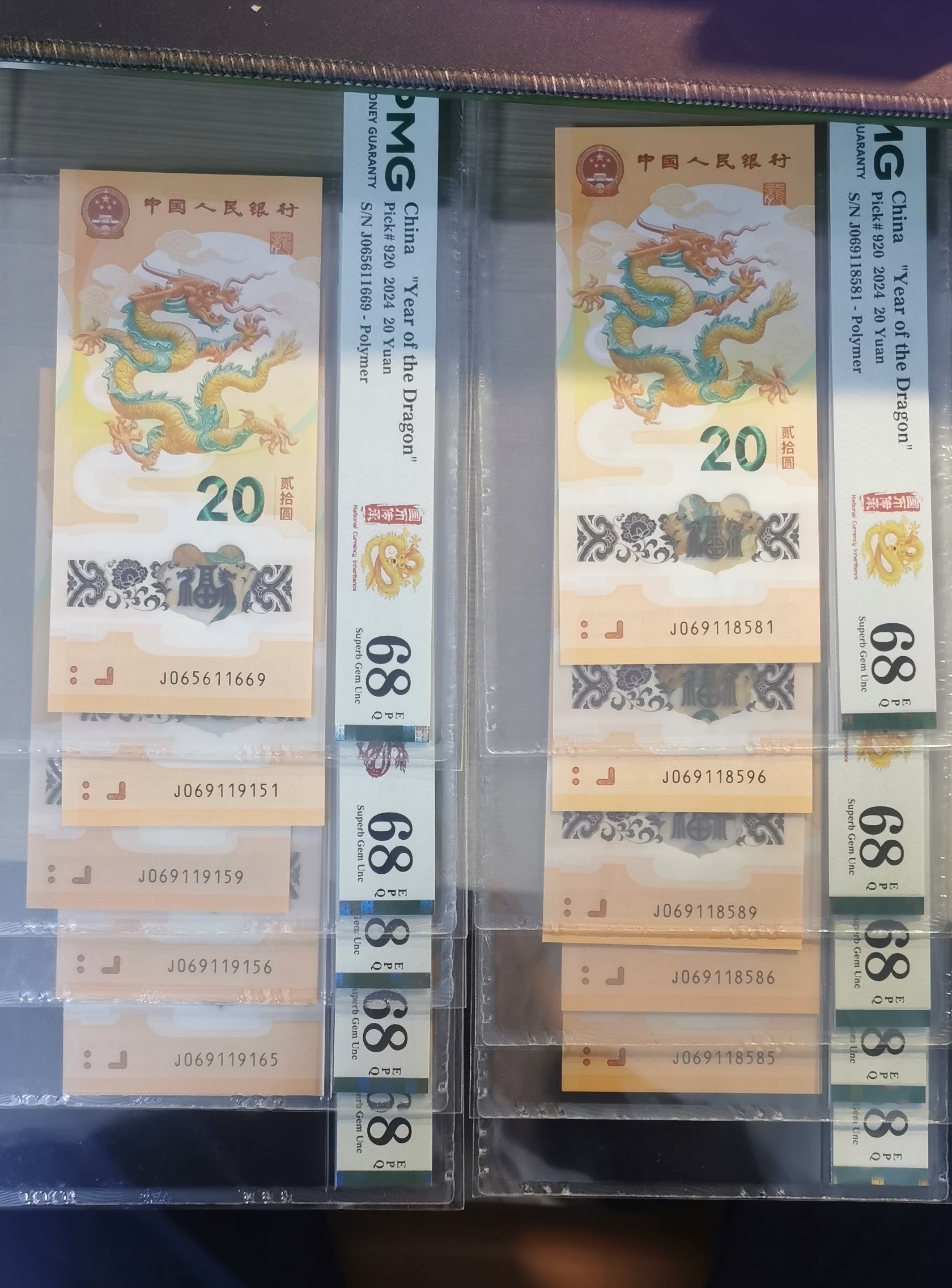 龙钞PMG68分金马车满号 1060*10=10600(5张01569,5张015689)