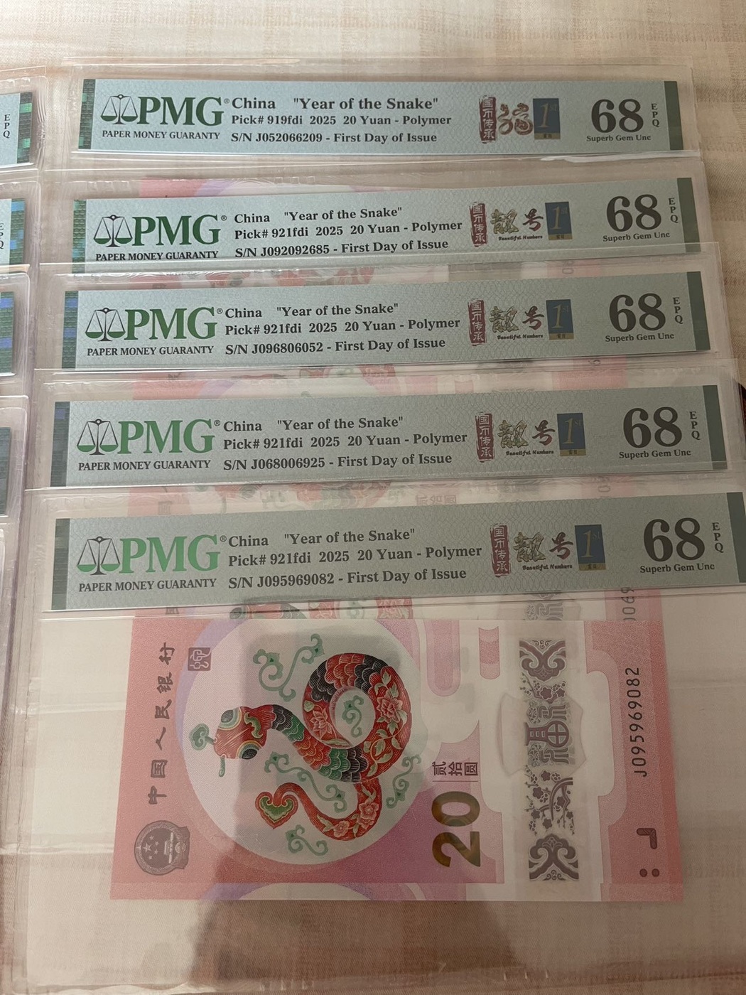 低售蛇钞pmg68蛇钞10张,号码如图,试一试如意火力,10张一起,6000包车马