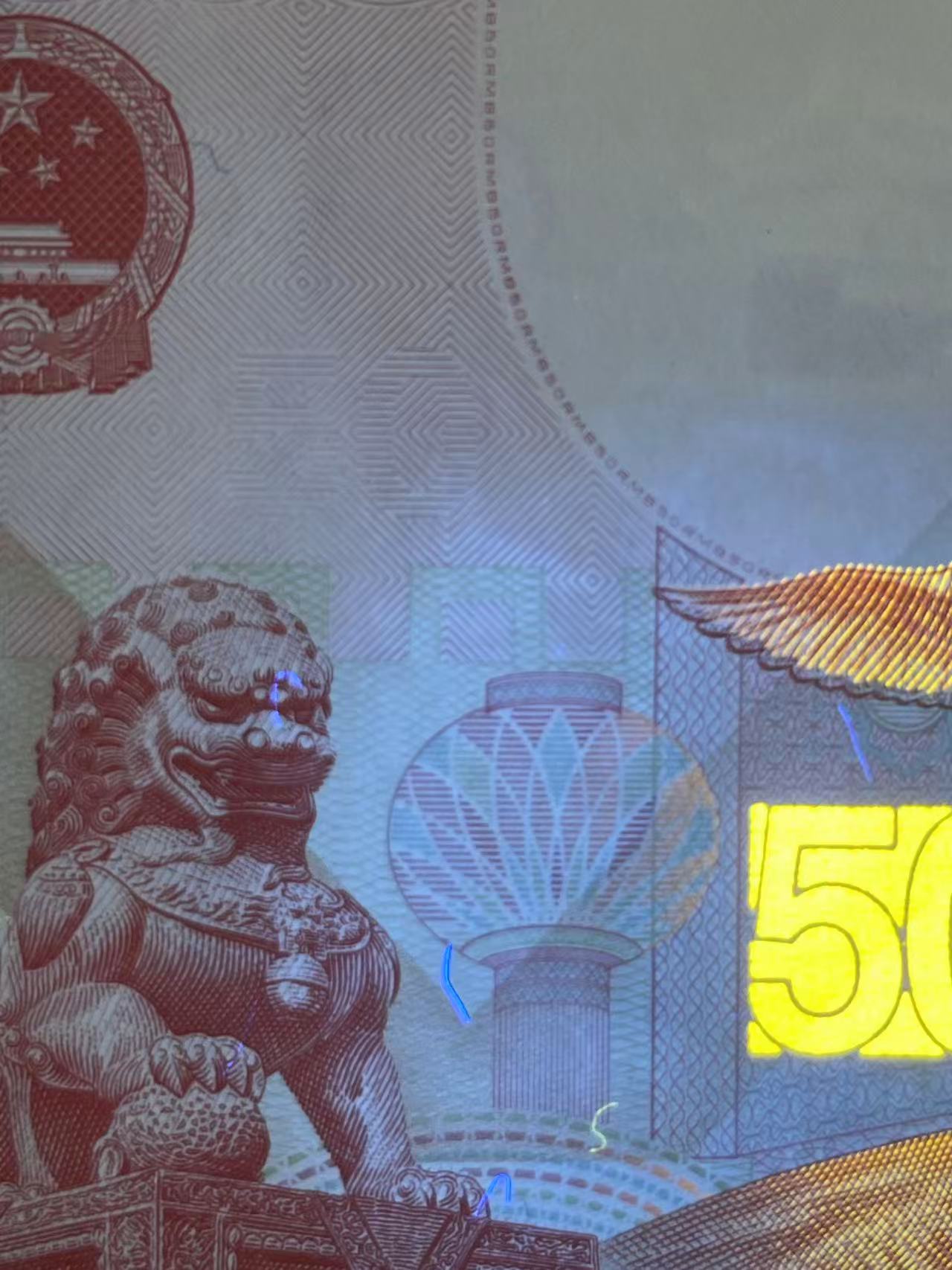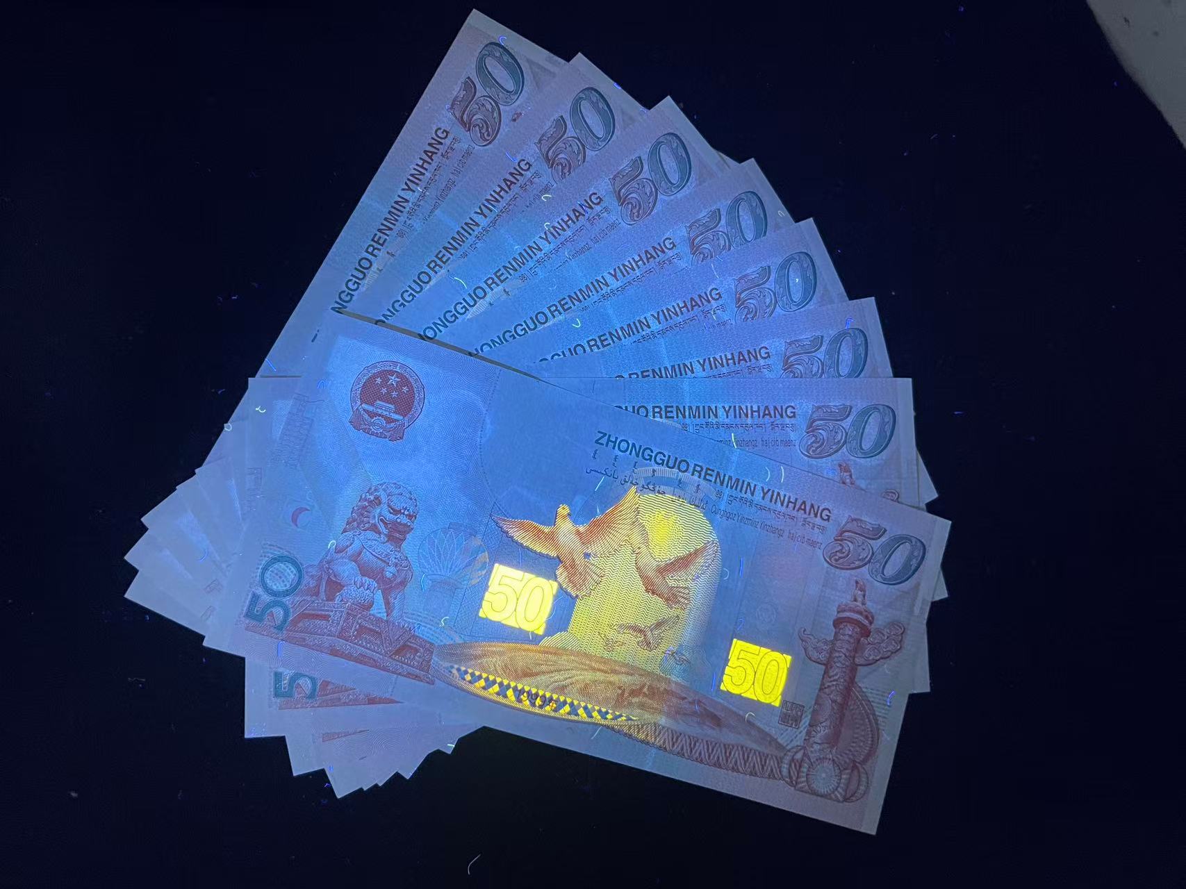 → 建国钞纪念钞50元,全新绝.品,灯下无斑。8张连号通走