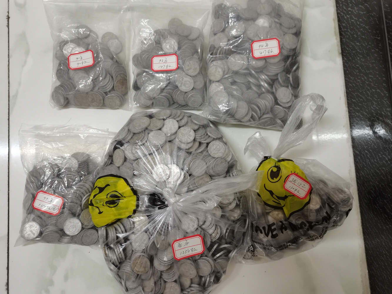91和93按0.26元/枚,94按0.19元/枚,99按0.73元/枚,普年按0.16元/枚,残币按0.08元/枚。算下来是462元,包邮非偏远。