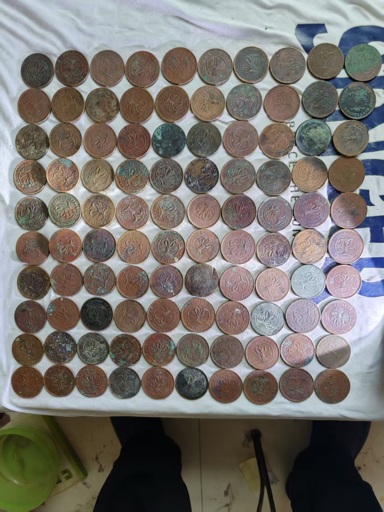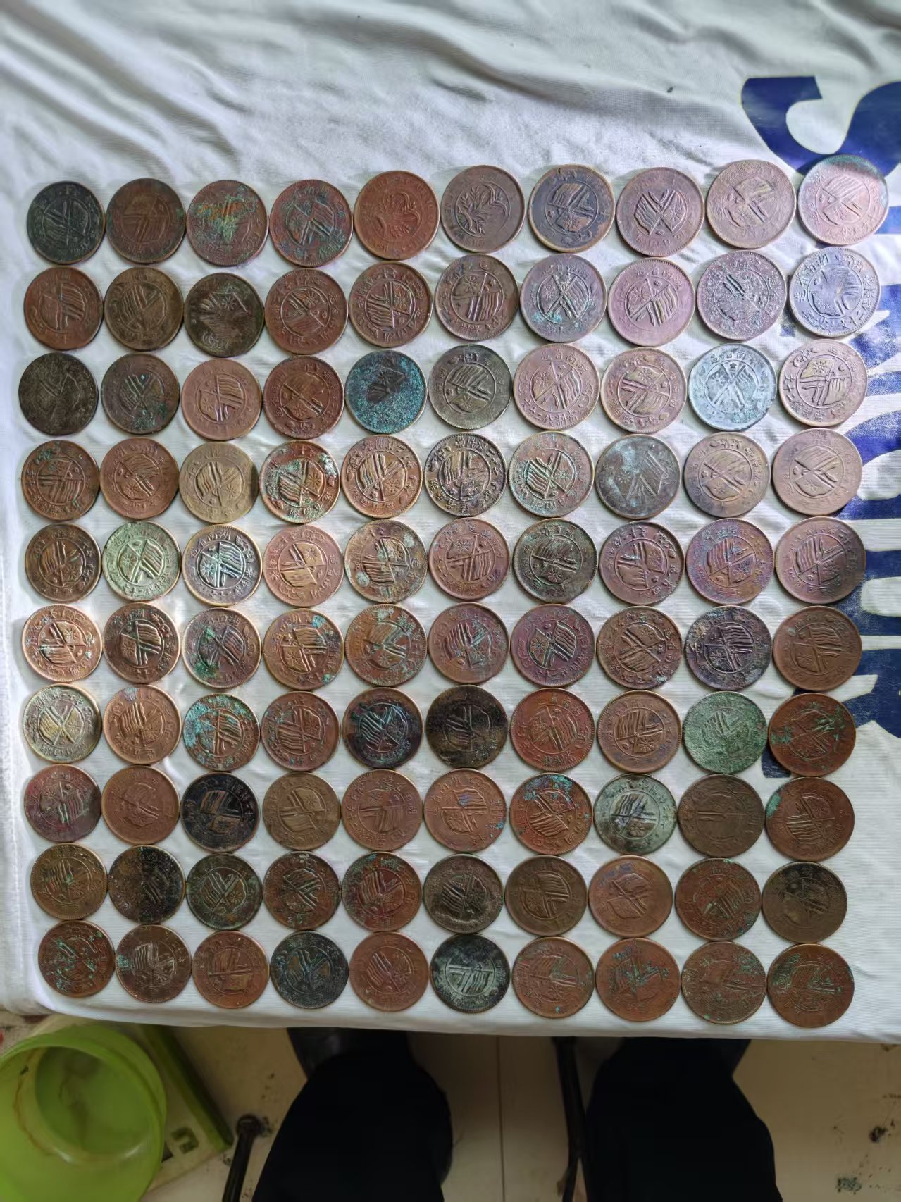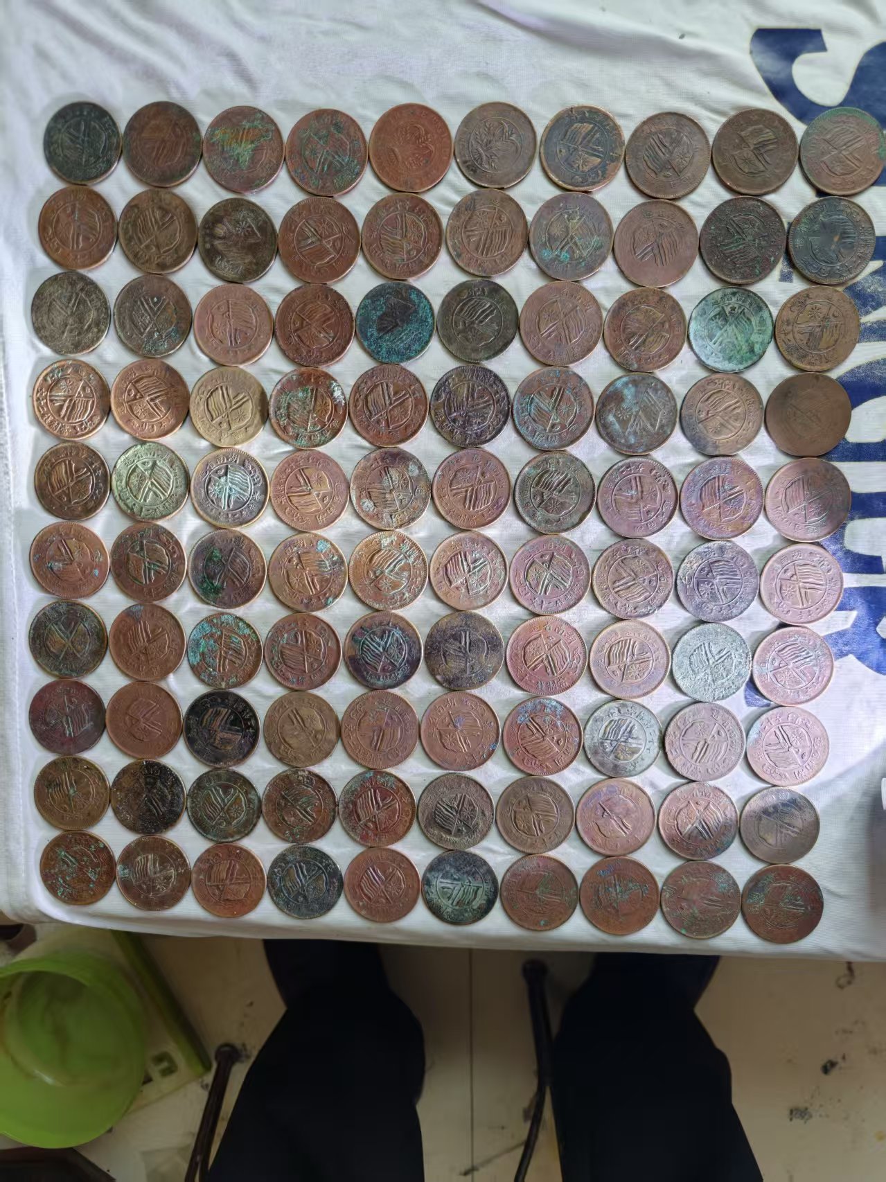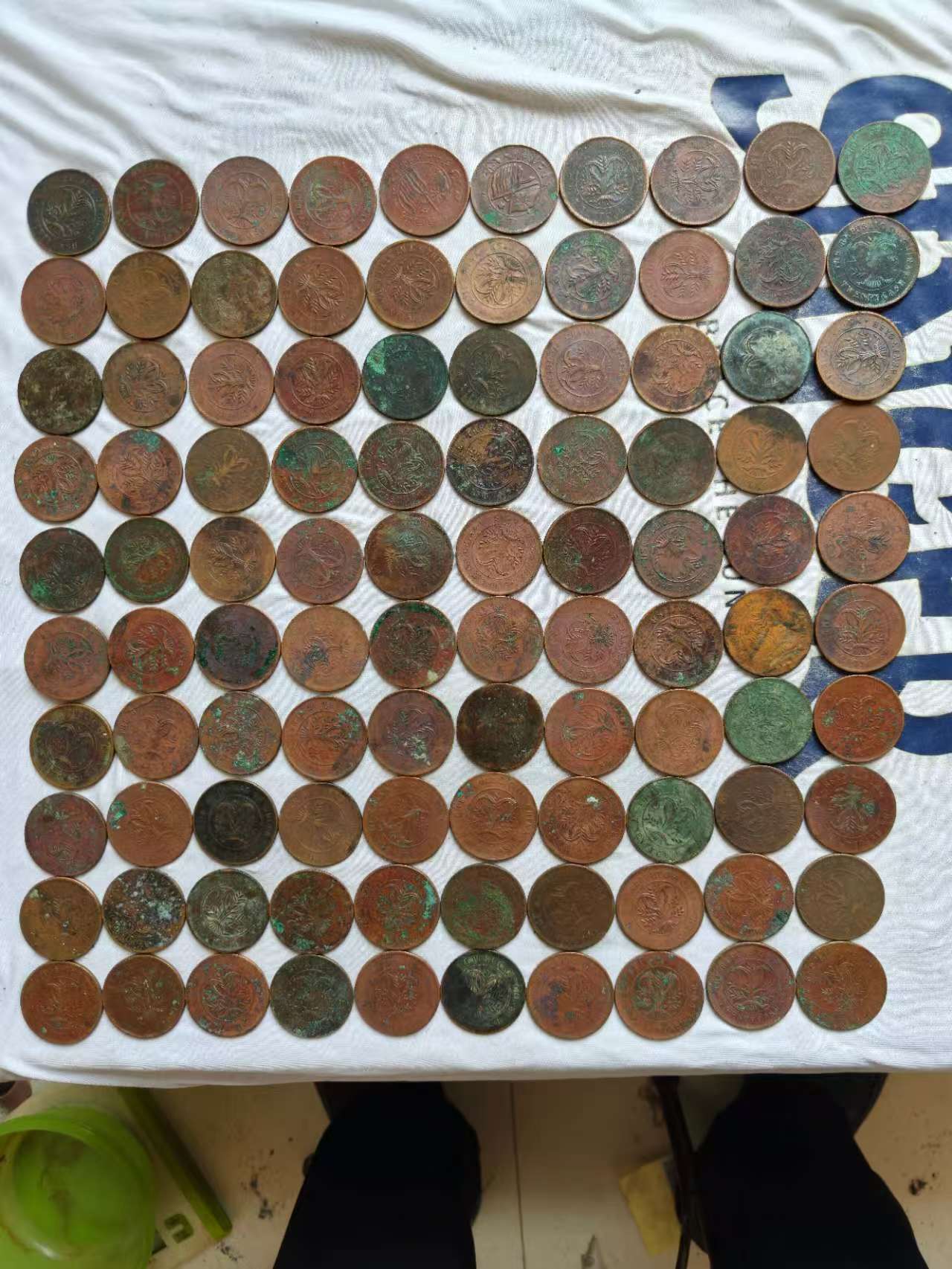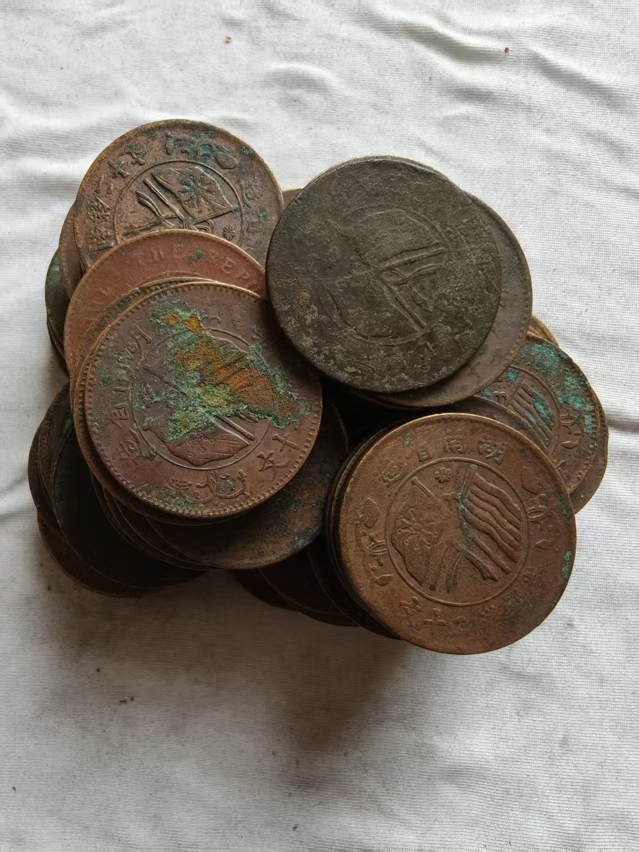 好品20文旗”铜板,摆摊收来数量100枚流通好品如图,板别不一样老包浆,没洗过,全部旗铜板实物拍图,图中的每一枚都在里面单枚直径:32毫米左右一线货,,保持原样收藏均价一枚只卖6元共600元一起卖不还价,包邮,品如图,喜欢确