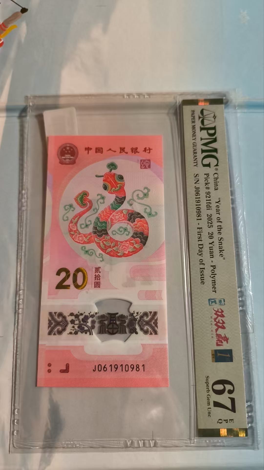 → 出蛇钞首日金兰标pmg67分倒置号
