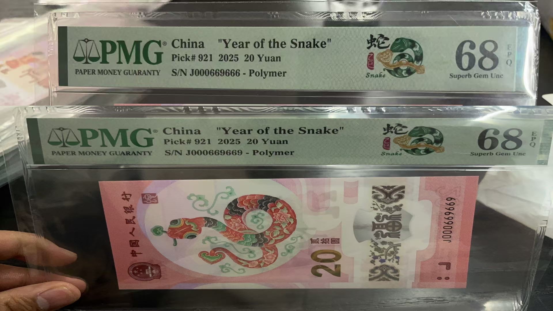出二张蛇钞蛇三小司令圆圆靓号,豹子循环,PMG68