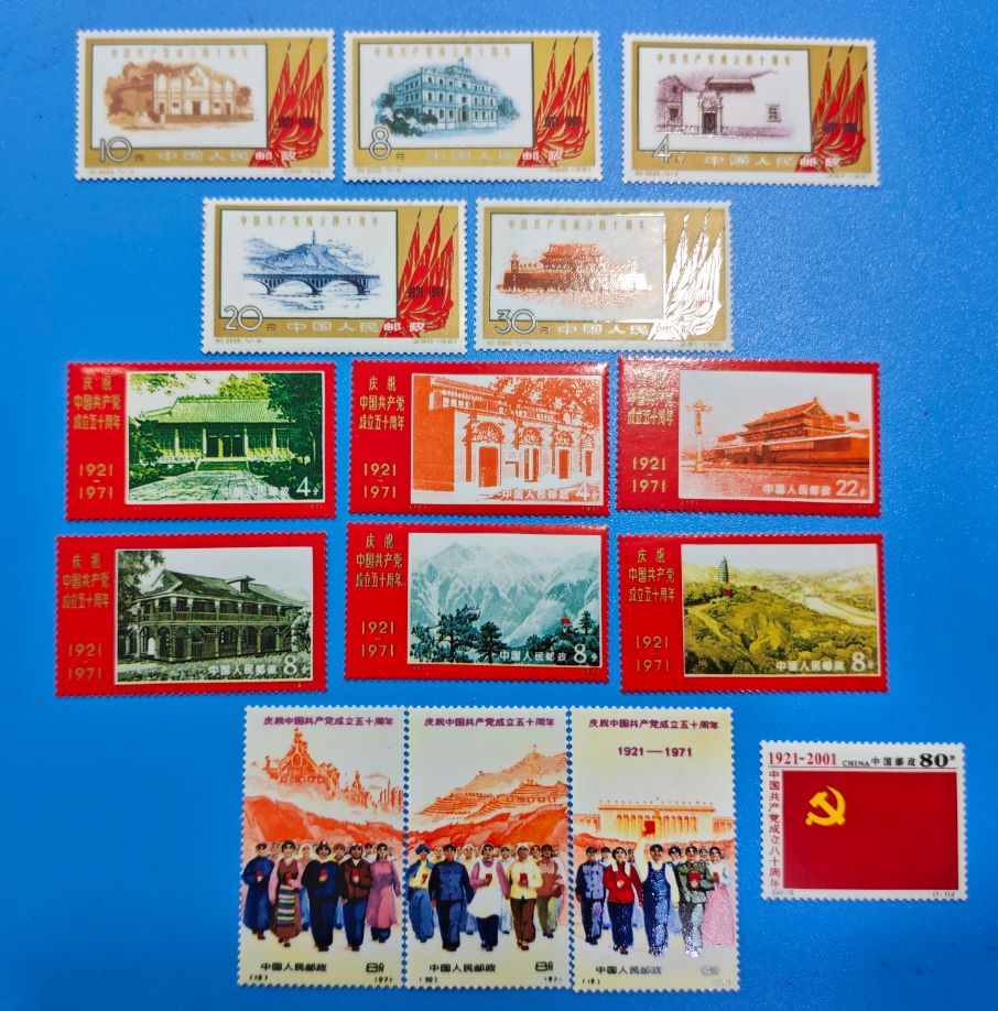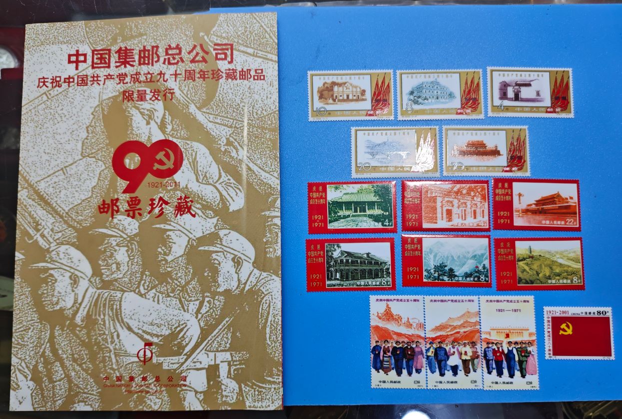 → 中国共产党成立九十周年纪念总公司册,瓷邮票