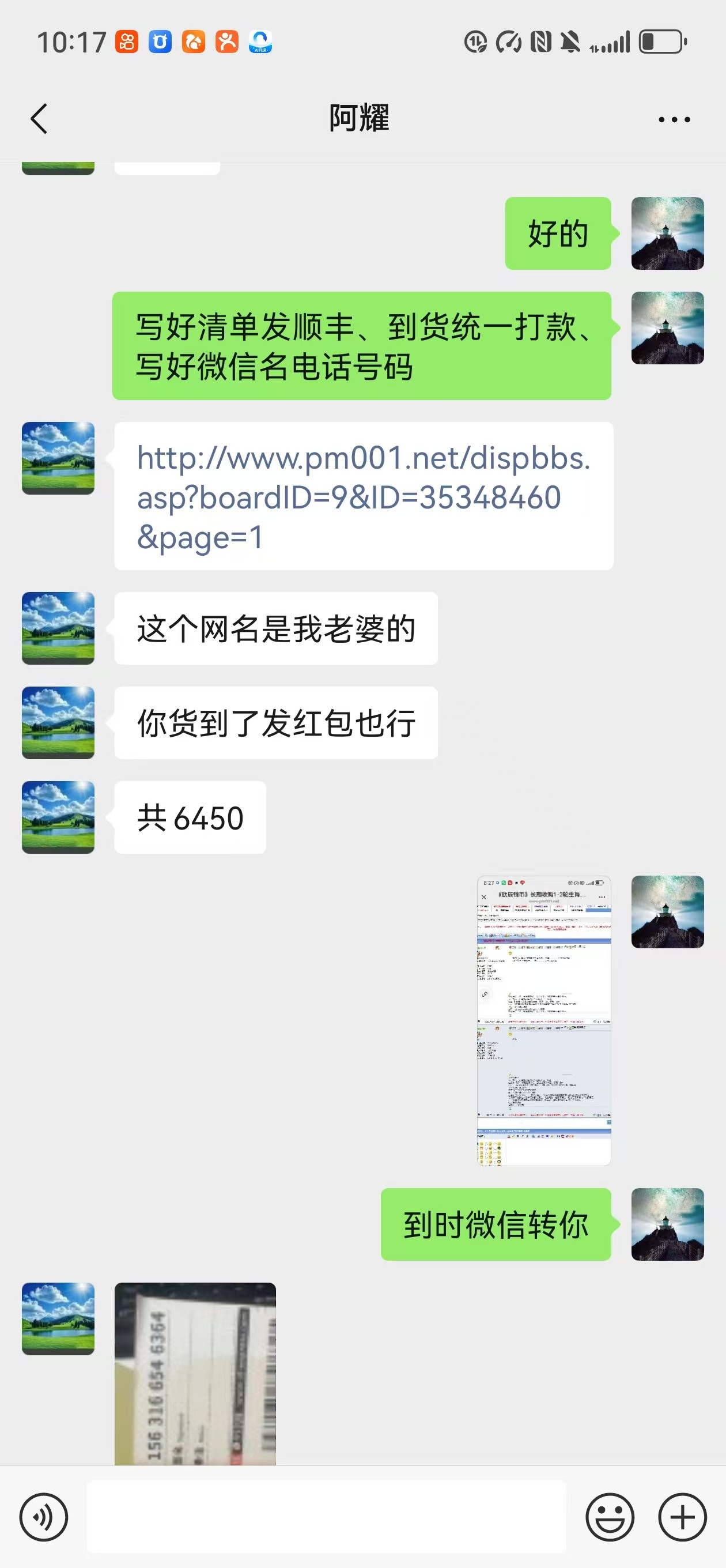 贴子上没要求先货,我要求先款买家不同意,取消交易,没有和我本人微信联系过