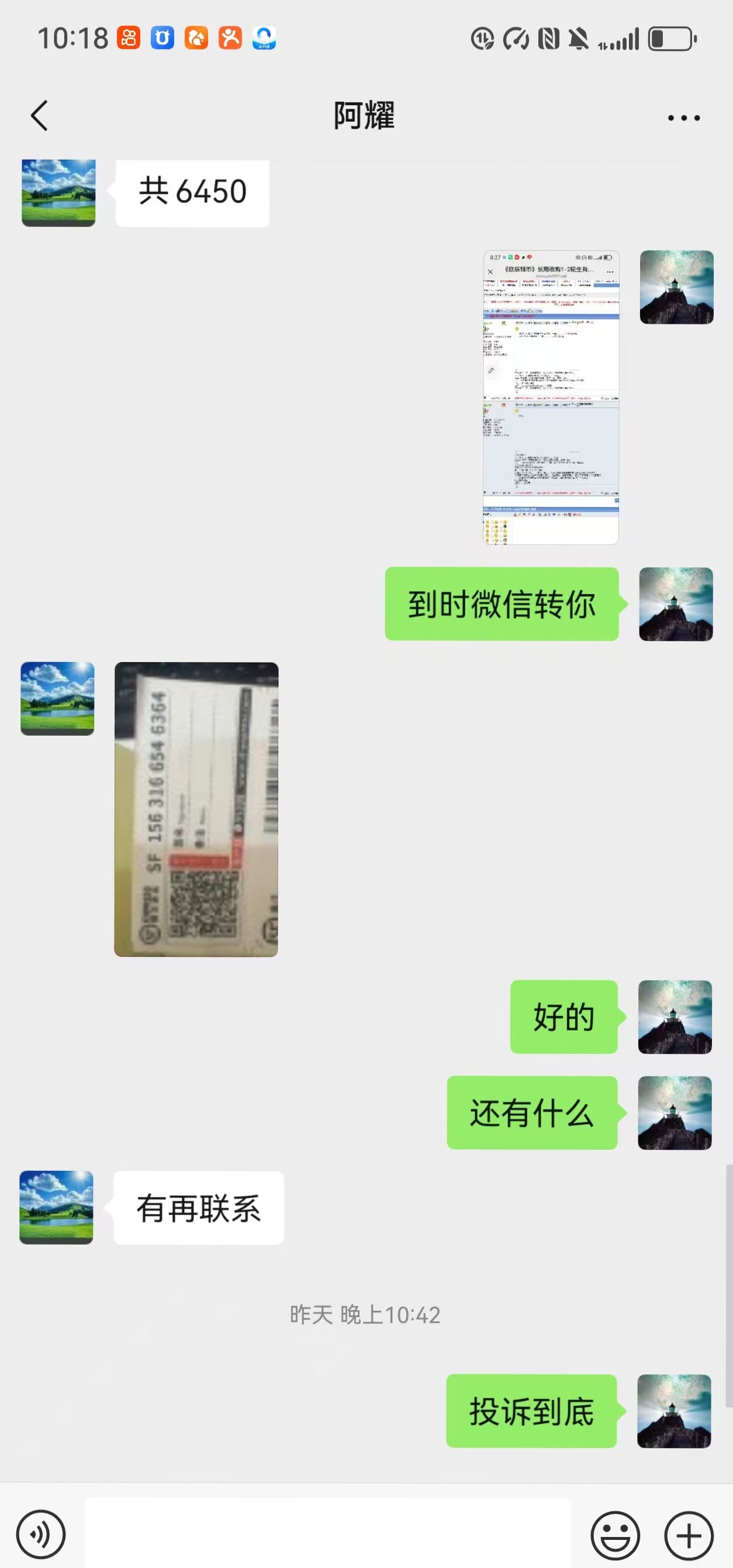 8点左右和我确认一套21彩金银牛,一套彩金银鸡一共6450、微信里说明到货打款,10点来电说另外一个人要了、要我先款我没同意