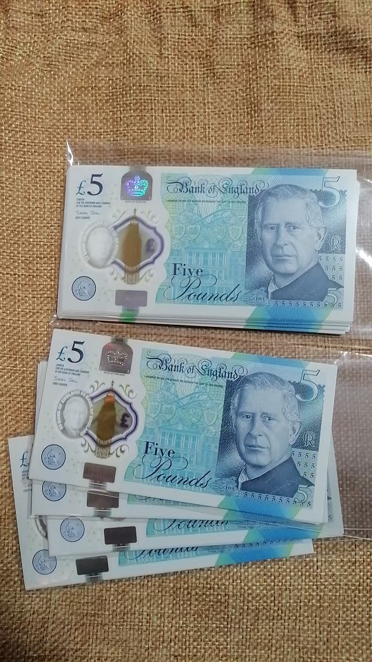 全新查尔斯5镑(含2个标十;散连或散张):70张*52元=3640元包顺丰陆运!